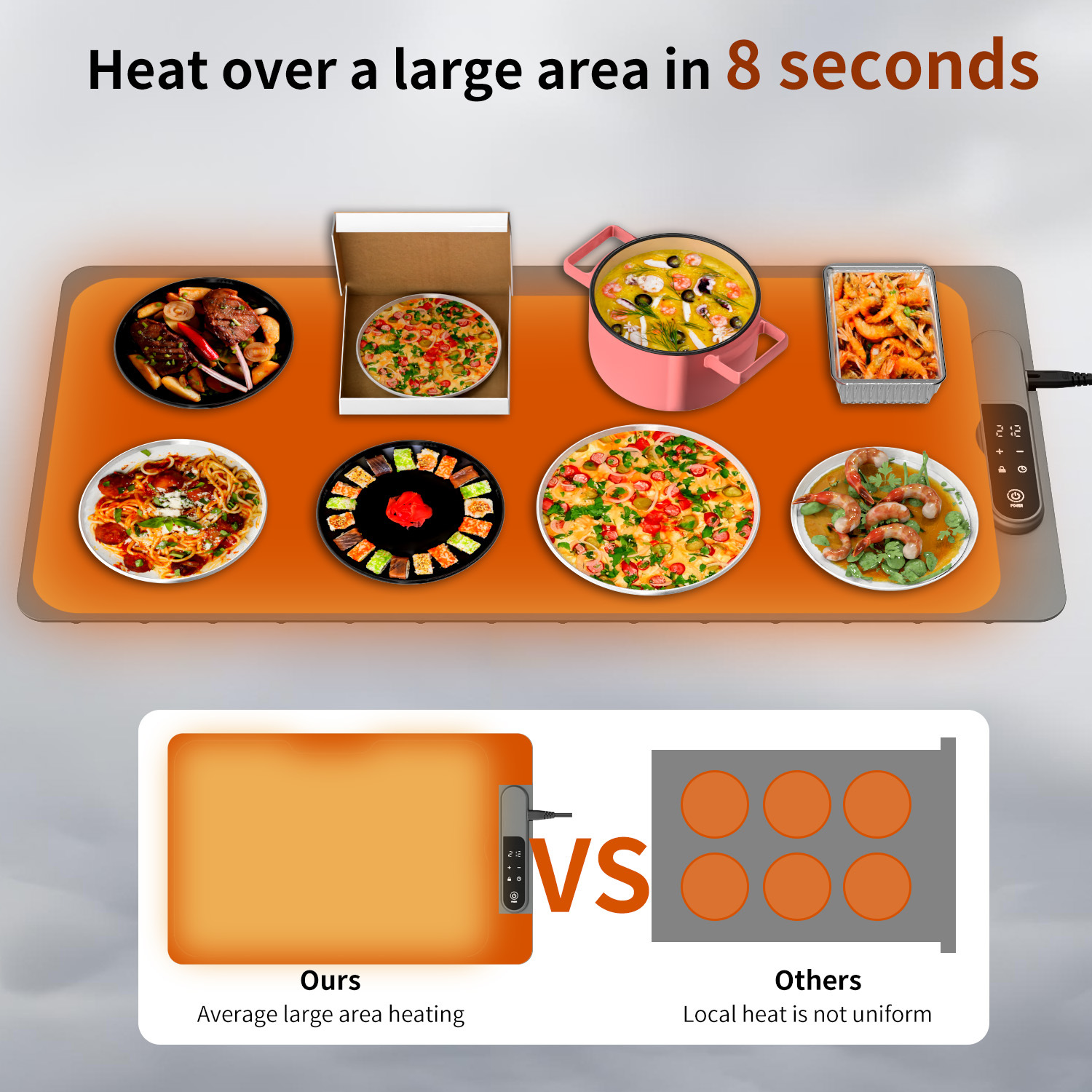 Smart Heating Technology – Maintains a steady, safe temperature to keep dishes warm during meals.