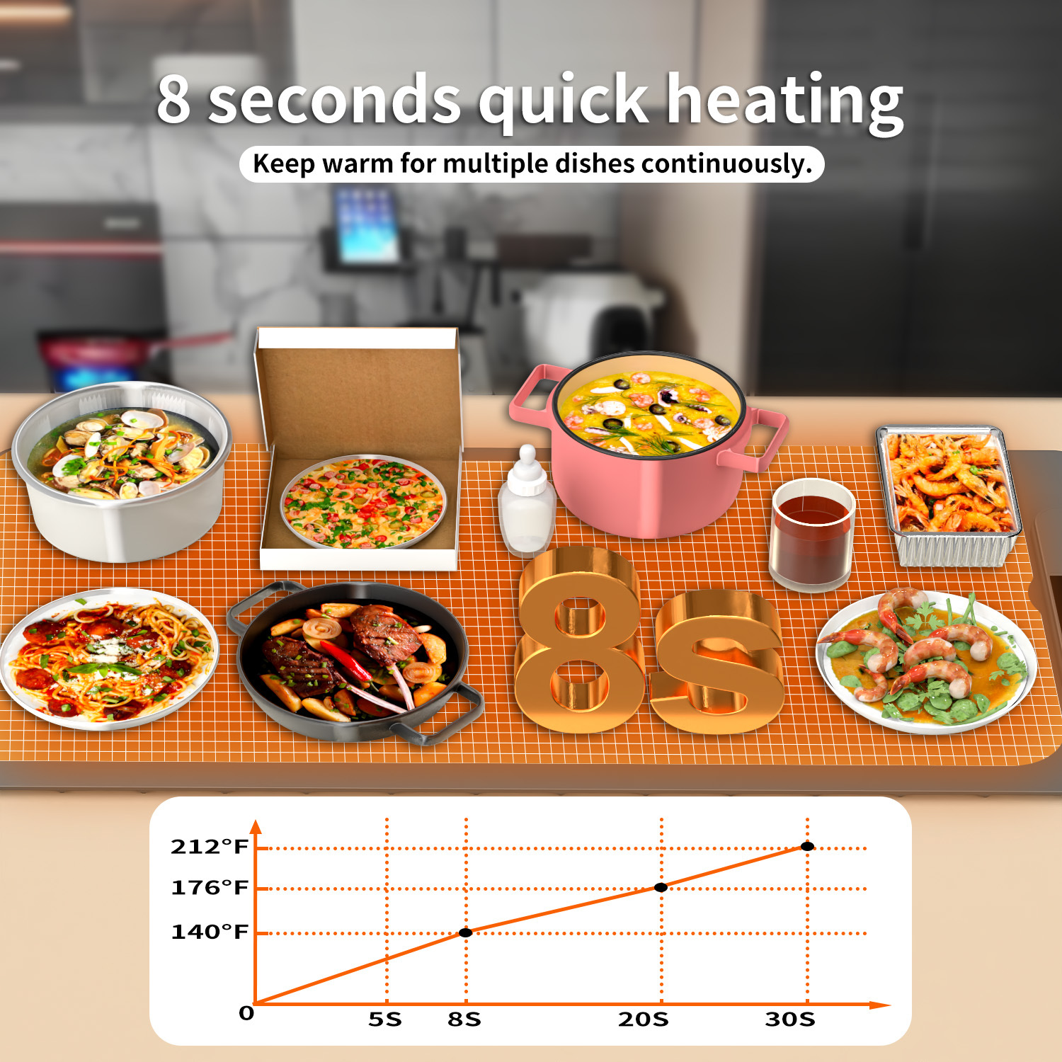 smart heating mat, warm cutting board, heated table mat, electric dining mat, food warming pad, heat-resistant kitchen mat, smart kitchen gadget, tabletop warming pad, multifunction heated mat